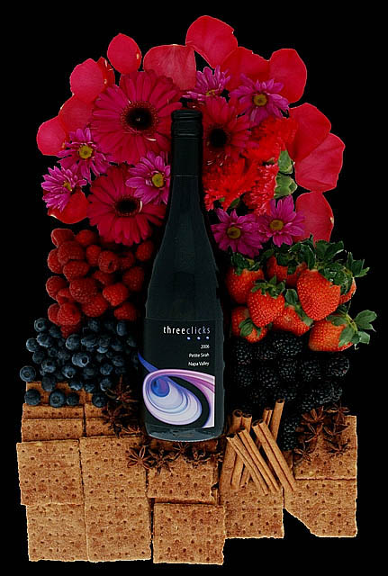 Our 2017 Napa Valley Petite Sirah comes from small vineyards located in the Calistoga appellation. The first, a family run vineyard called Citron, was planted to Petite Sirah in 2004. We work closely with the Citrons throughout the growing season to achieve the best quality fruit for Three Clicks. Our second Petite Sirah source comes from Gary Branham’s Obsidian vineyard. Gary is a well established grower and good friend. He farms his vineyard immaculately, making sure that every vine and every cluster is in perfect condition. The third source is the famed Frediani Vineyard. The family has a long standing reputation for excellent farming and location. They have farmed the same piece of land since the turn of the last century. The rocky soils in these vineyards combined with the cool growing season and diligence in the vineyard produced a Petite Sirah that is intensely colored and packed full of boysenberry and blueberry jam characteristics.